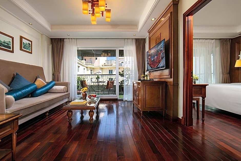 Featuring a private terrace, spacious air-conditioned suites feature views of the Old Quarter. The suites come fitted with a separate living room and are equipped with a flat-screen cable TV, in-room safe, a mini-bar and tea/coffee making facilities. The 2 private bathrooms come with a hairdryer, bathtub, bathrobes and free toiletries.